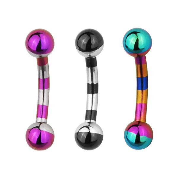 Striped Anodized Surgical Steel Curved Barbell. This Item Is Available in a Variety of Sizes and Colors!
