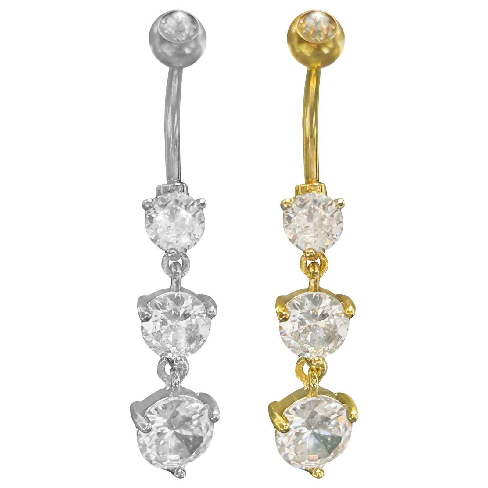 Surgical Steel 3-Tier Dangling CZ Stones Belly Ring