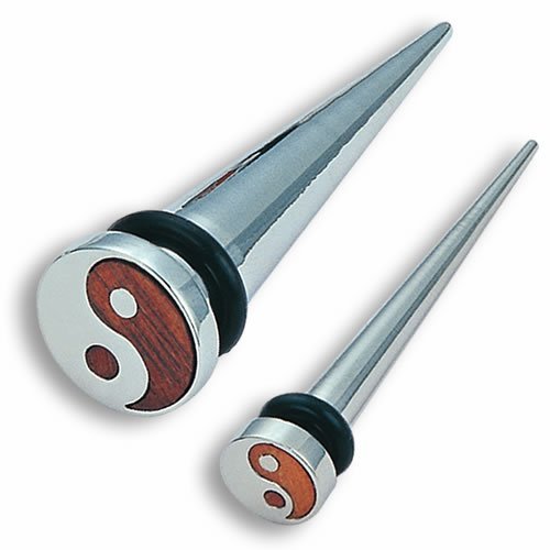 Surgical Steel and Wood Hole Expander w/ Ying Yang Design