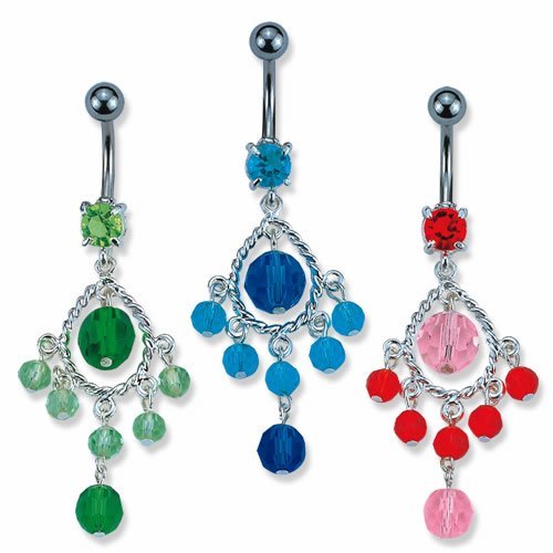 Surgical Steel Belly Ring with Multi-Stone Chandelier Dangle