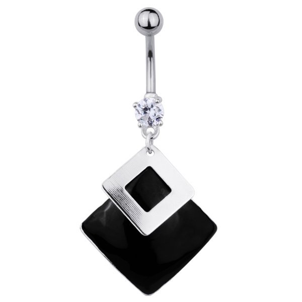 Jeweled Belly Ring with Steel and Black Agate Stone.