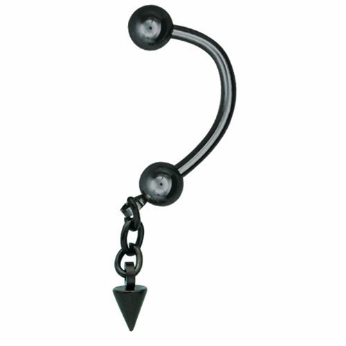 Surgical Steel Black PVD Curved Barbell Earring w/ Cone Dangle