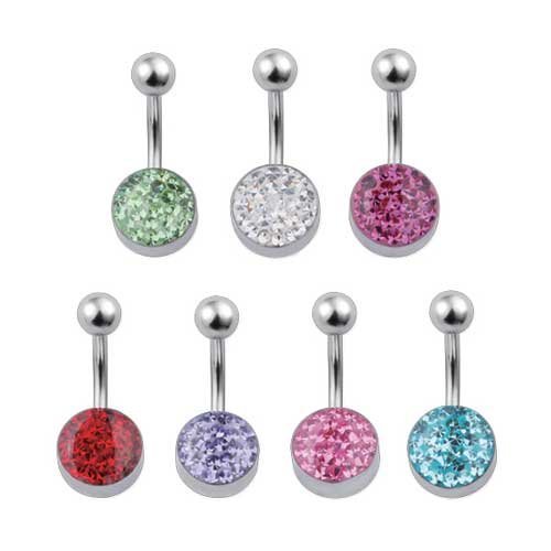 Surgical Steel Curve Barbell With Foiled CZ Stones Coated With A Clear Epoxy Over The Stones For A Very Smooth And Secure Finish!! This Item Has A Variety Of Colors To Choose From!!