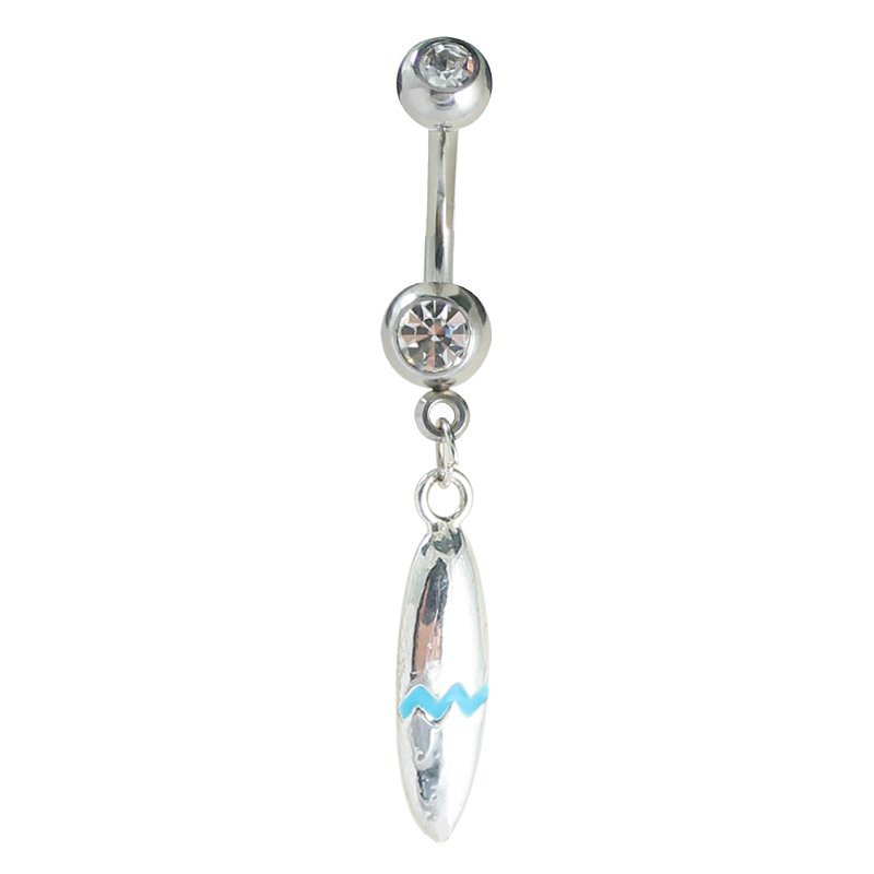 Surgical Steel CZ Belly Ring with Dangle Surf Board