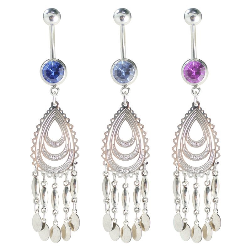 Surgical Steel CZ Belly Ring with Dangle Tear Drop Lace Design