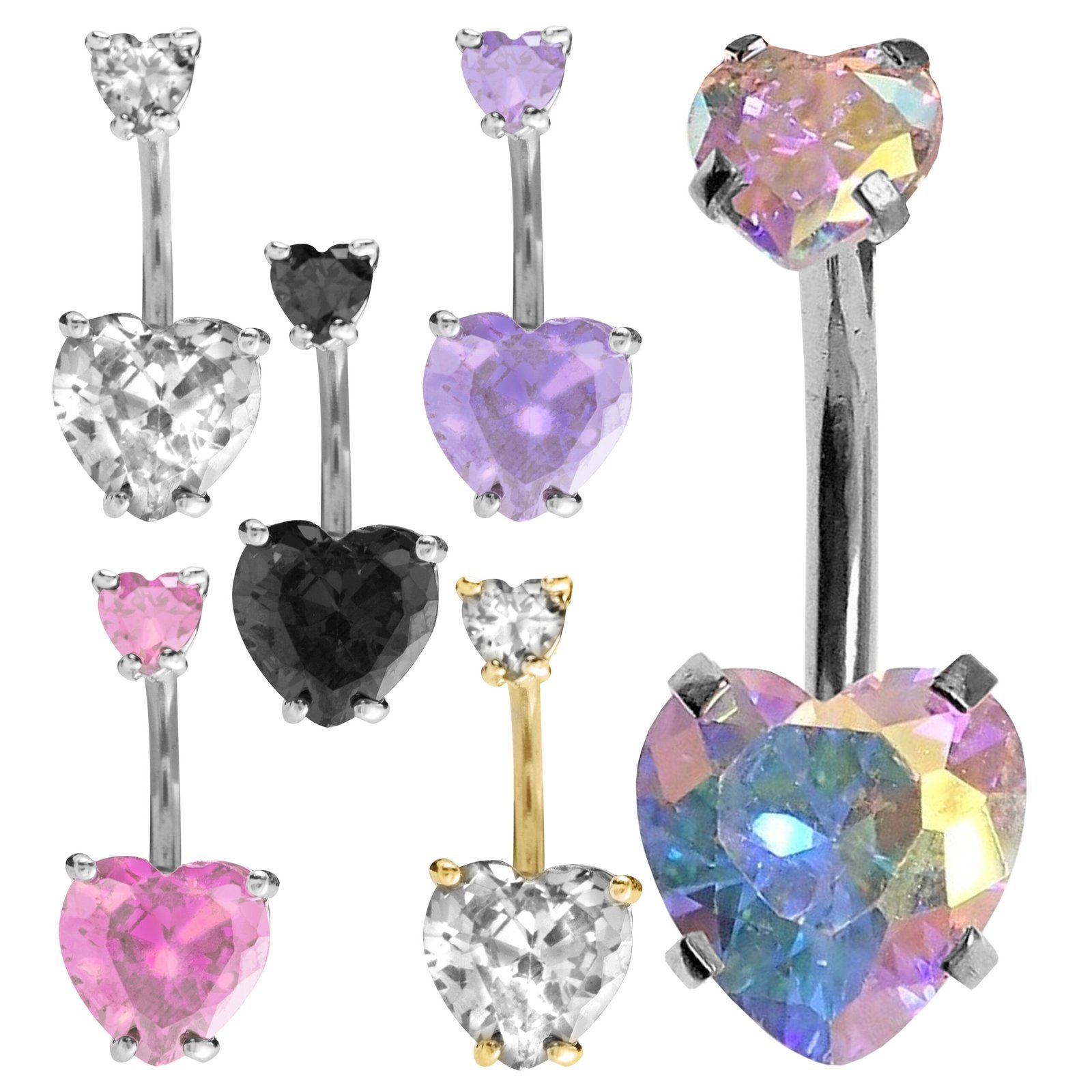 Surgical Steel CZ Heart Belly Ring