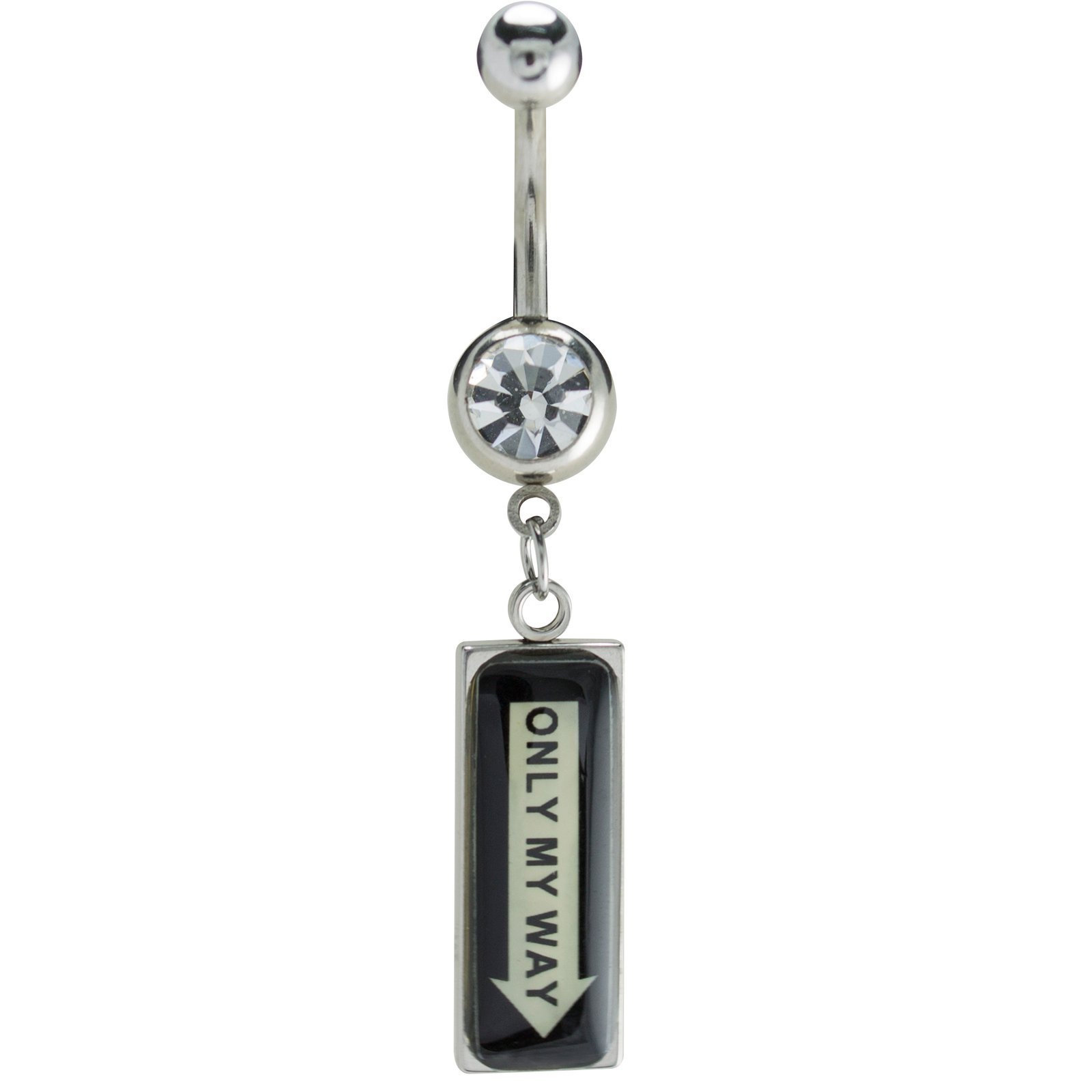 Surgical Steel CZ “Only my Way” Dangle Belly Ring