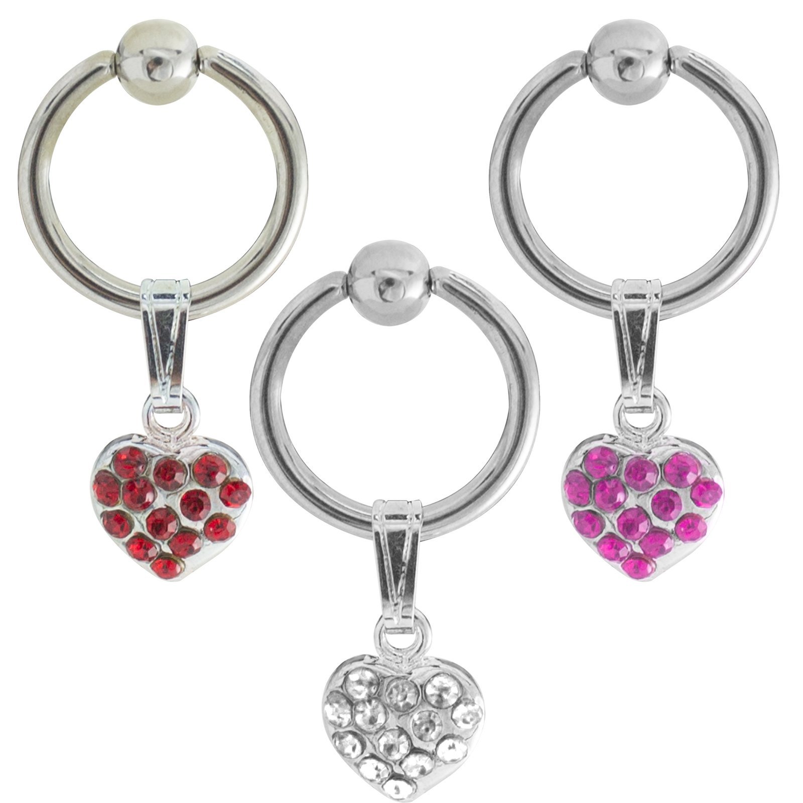 Surgical Steel Dangle Encrusted Heart Captive Ring