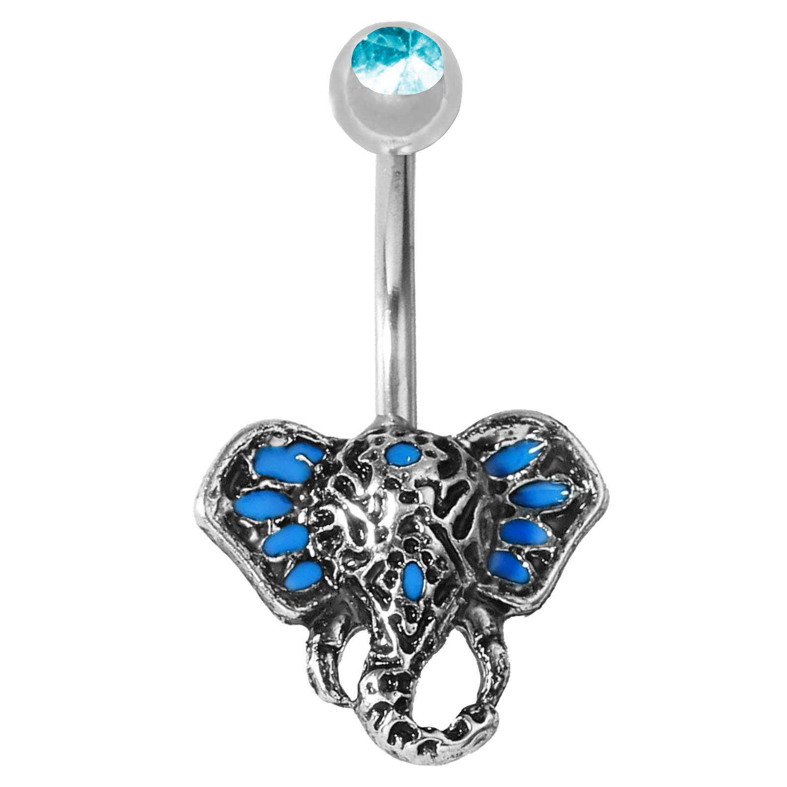 Surgical Steel Quad Row Solitaire Crystals Belly Ring