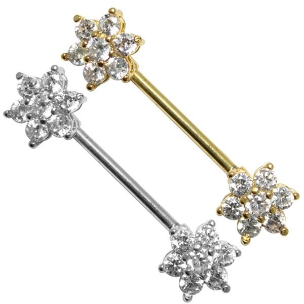 Surgical Steel Floral CZ Nipple Barbell Ring