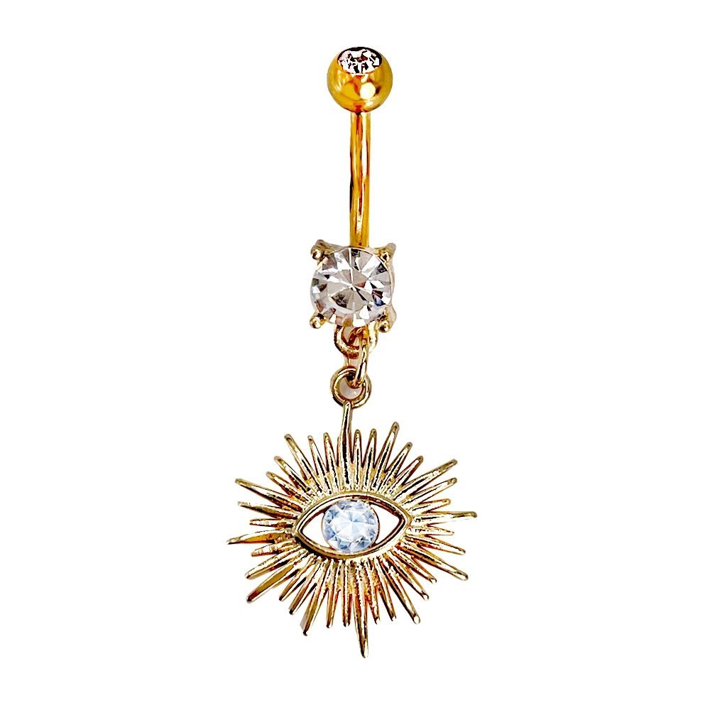 Surgical Steel Gold Dangling Evil Eye Belly Ring