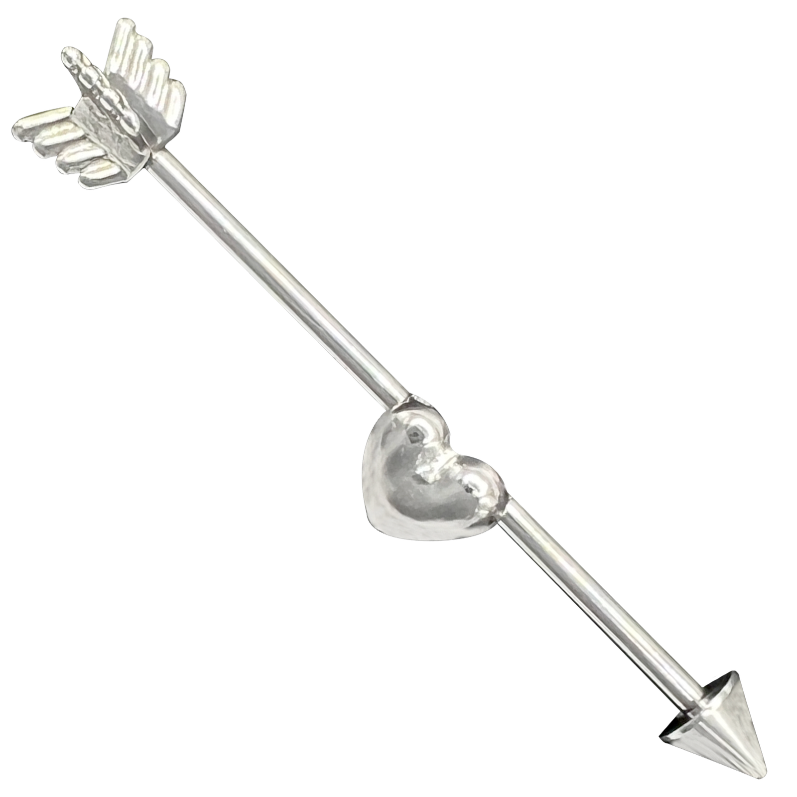 Surgical Steel Industrial Barbell Arrow w/ Heart in the Center