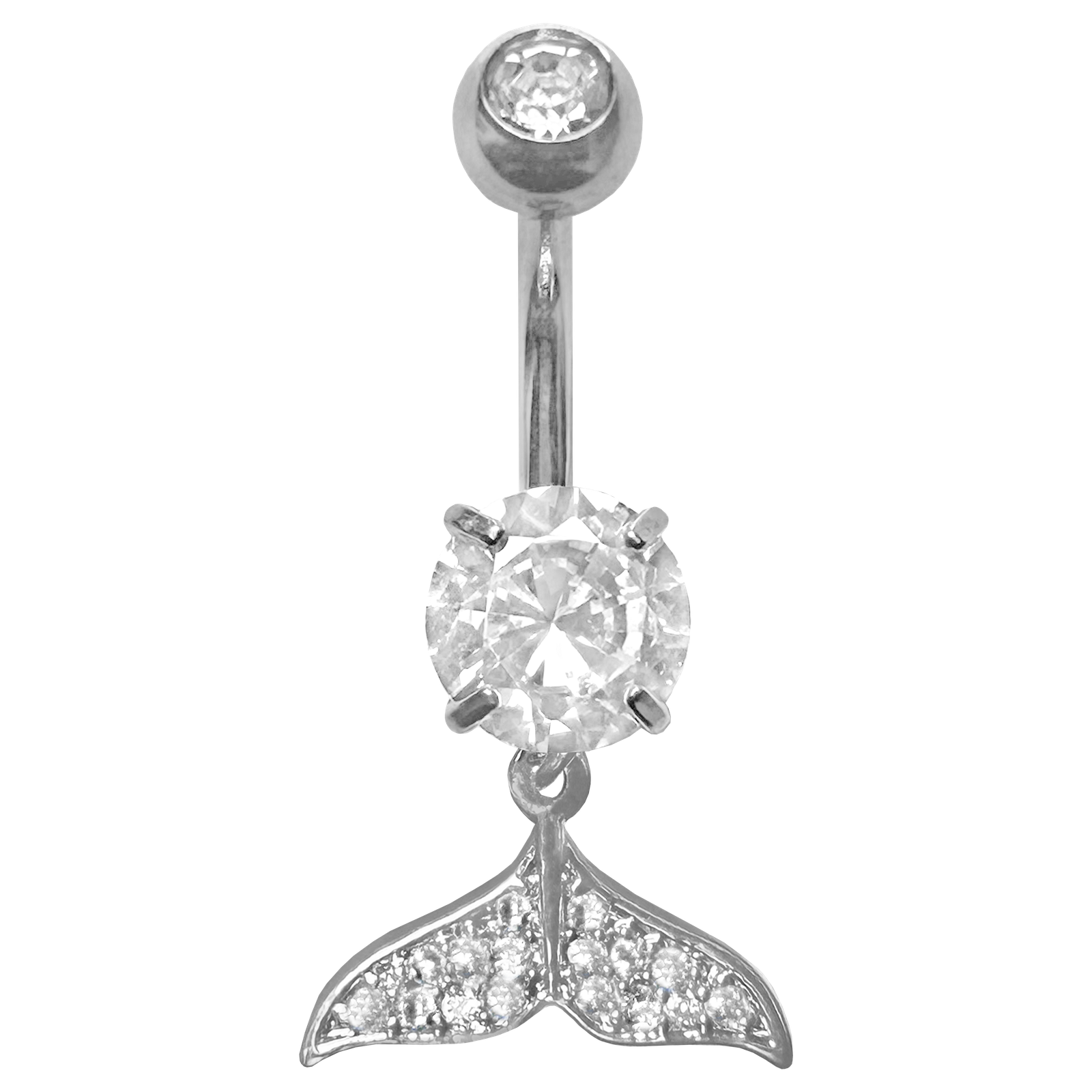 Surgical Steel Jeweled Belly Ring w/ Dangling Whale Tail