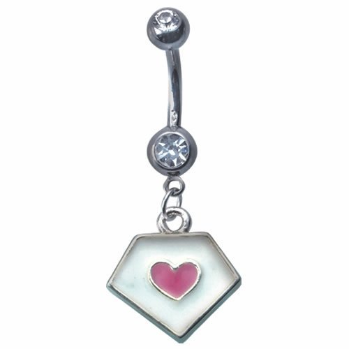 Surgical Steel Jeweled Belly Ring With Heart Dangle