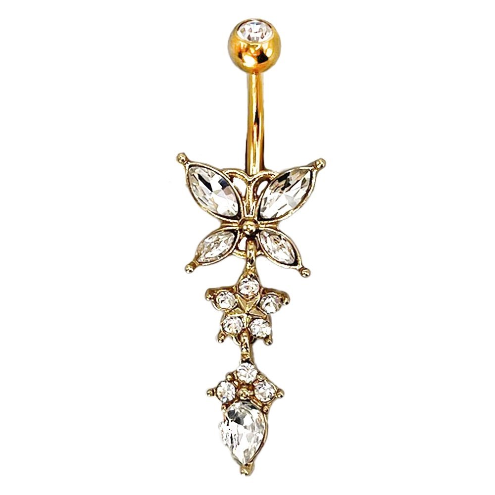 Surgical Steel Jeweled Gold Dangling Butterfly Belly Ring
