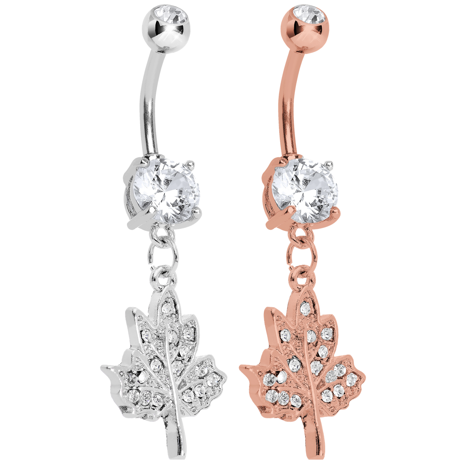 Surgical Steel Jeweled Maple Leaf Belly Ring
