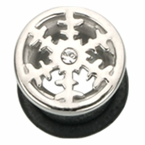 Surgical steel plug with carved snowflake design with small jewel 8×12