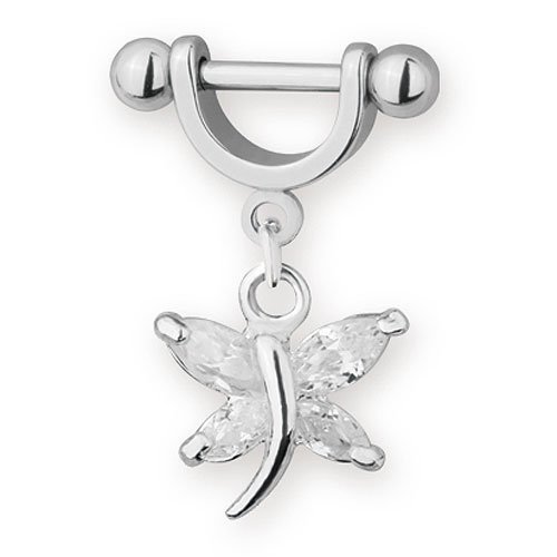 Surgical Steel Tragus/ Helix Barbell With Dangle Jeweled Butterfly