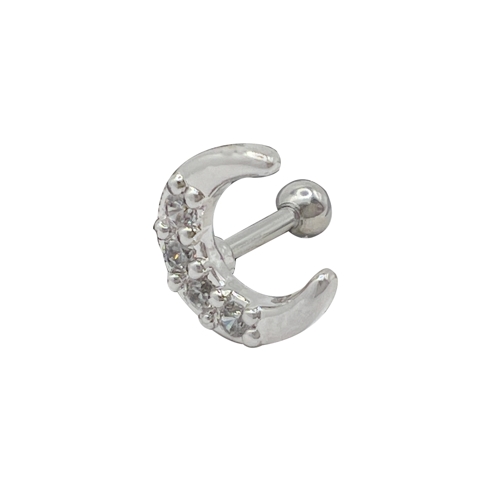 Jeweled Moon Barbell Cartilage Earring For Tragus/Helix Piercings.