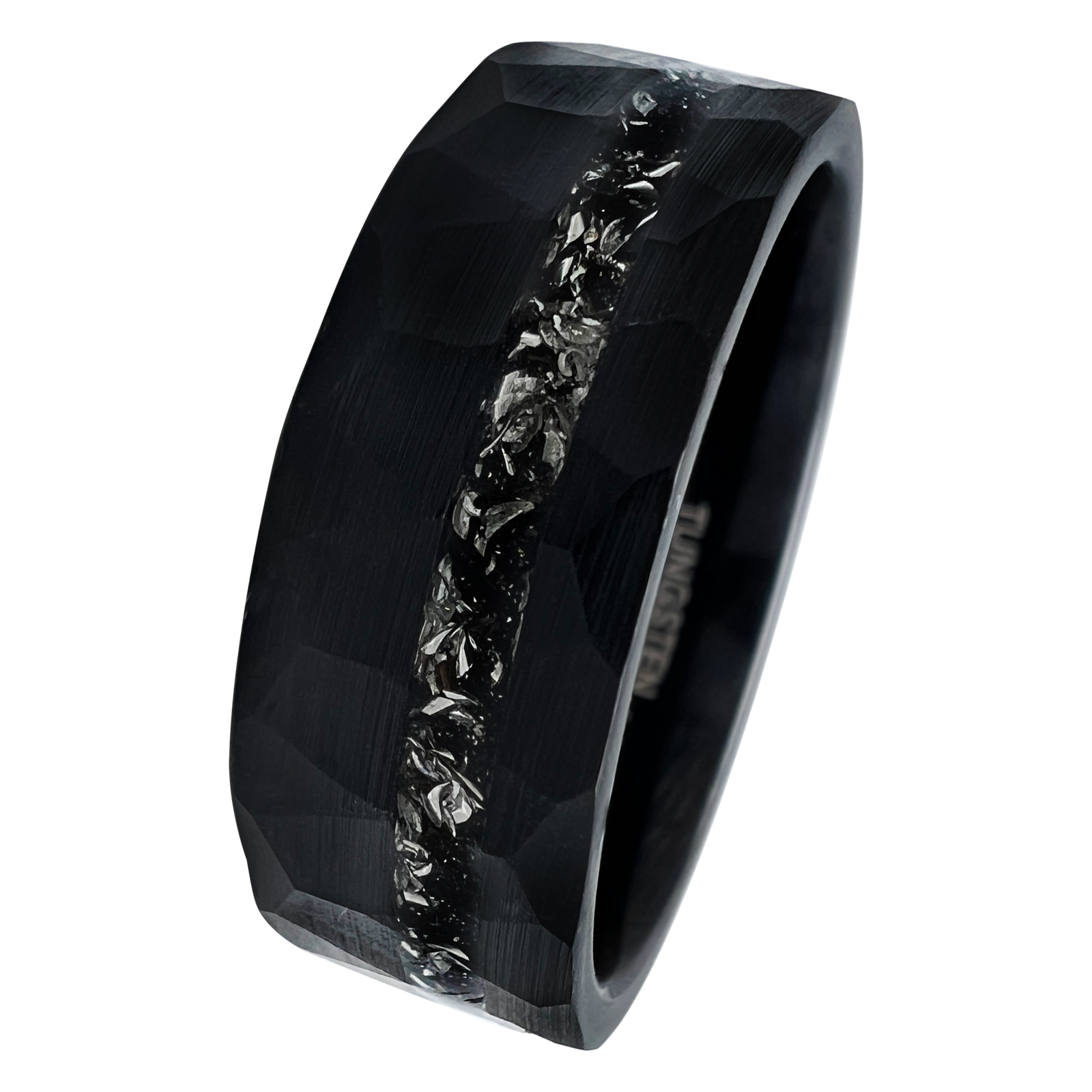 Tungsten Black PVD w/ Diamond Pattern and Grey Stripe Ring