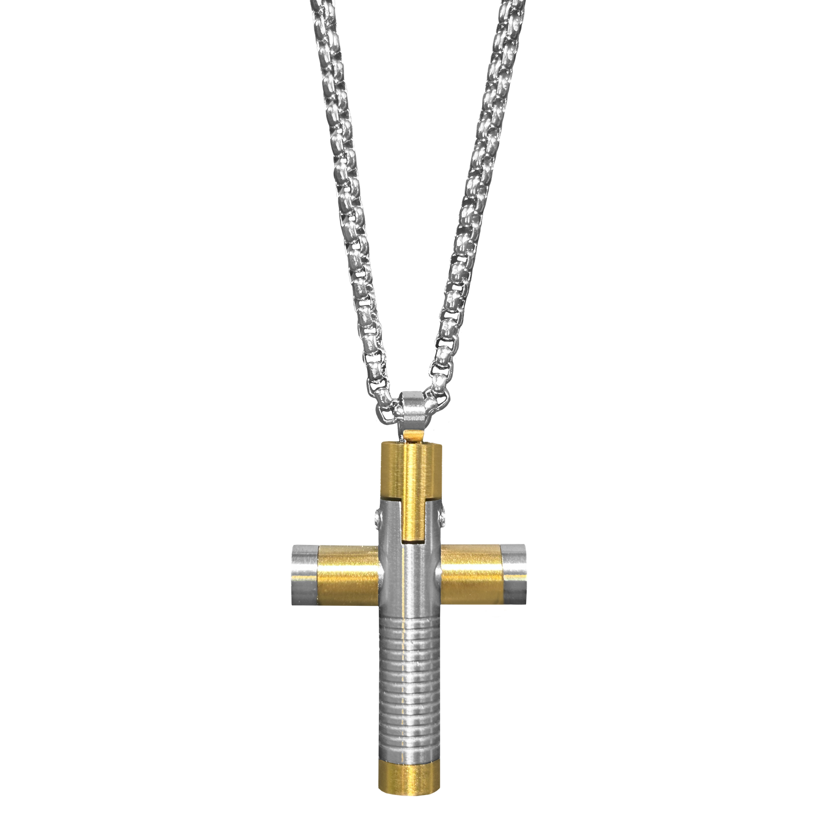 Two-toned Stainless Steel Cylinder Cross Necklace