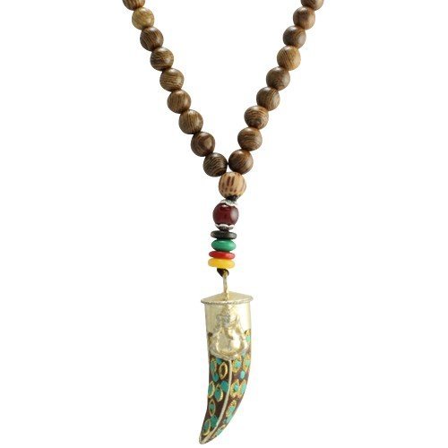 Wood Beaded Necklace with Animal Pendant